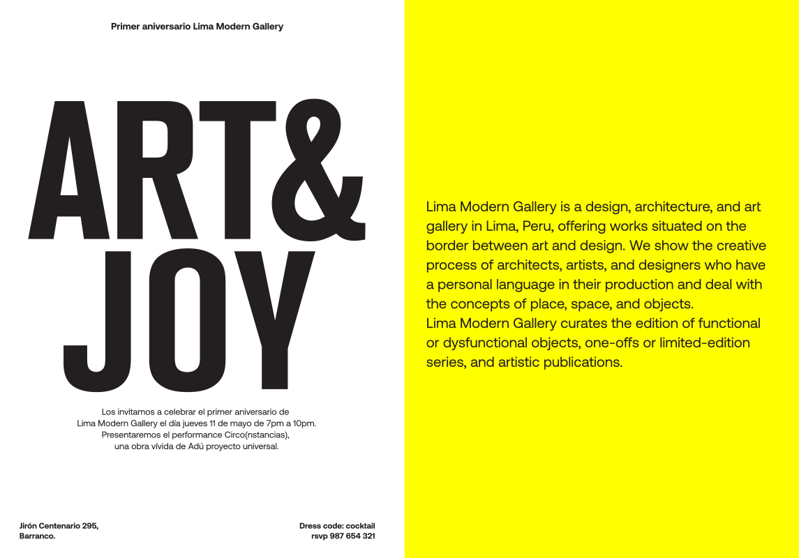 Lima Modern Gallery, located in Lima, Peru, is a dynamic space that seamlessly blends design, architecture, and art. The gallery highlights the creative processes of architects, artists, and designers with distinctive personal languages. Lima Modern Gallery curates a diverse collection that includes functional objects, unique one-offs, limited-edition series, and publications. We developed for LMG print and digital design pieces tailored for international art fairs and big celebrations.